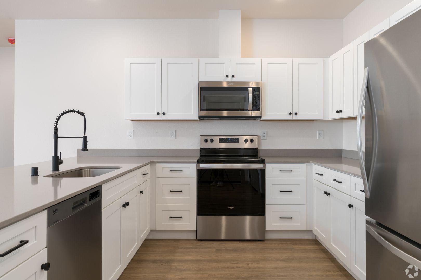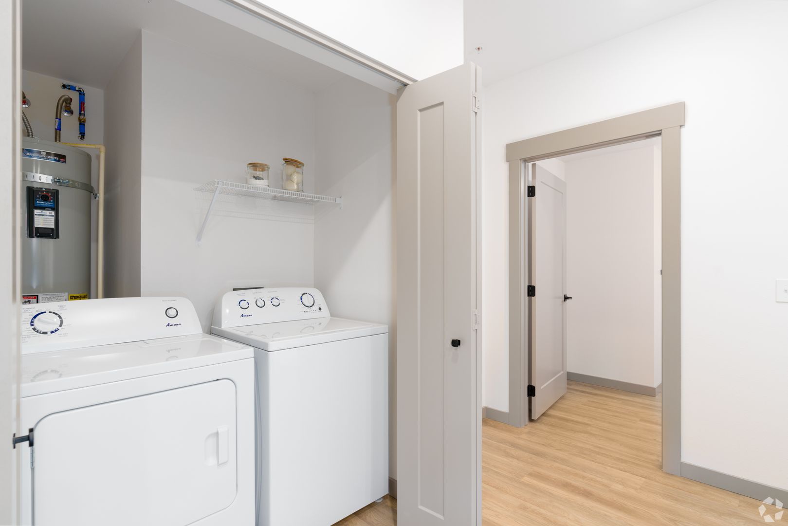The apartment features high-end finishes such as luxury vinyl planking, quartz countertops, and stainless steel appliances. Convenience is key with a garage, washer and dryer included in each unit. Pet owners will appreciate our pet-friendly policy, and eco-conscious residents will love the electric vehicle charging station.